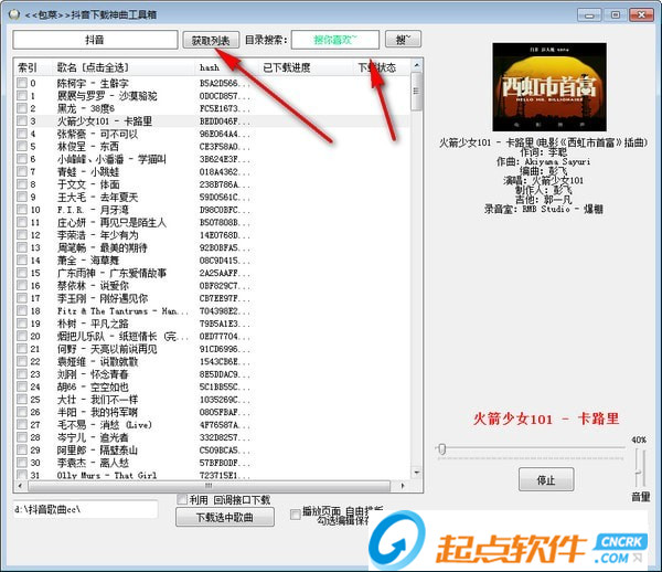 3.勾选喜欢的歌曲,设置下载目录,点击下载选中歌曲即可。