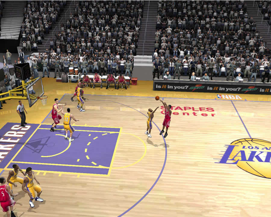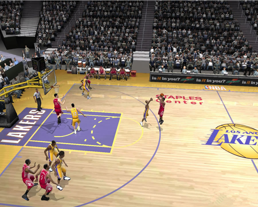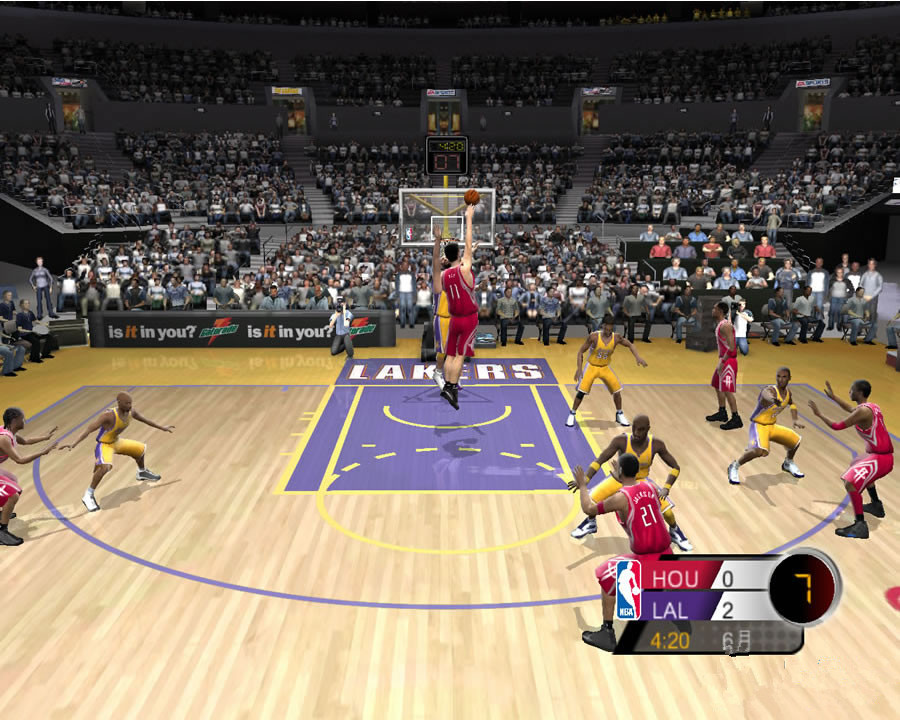 5、自由地捕捉十位篮球选手动作:比赛时所插入与剪接的动画相当流畅生动,包括双方从底线往篮下进攻的冲突情节、飞身到半空中以及在篮下对峙时的全新攻防战、无球球员的动画等。