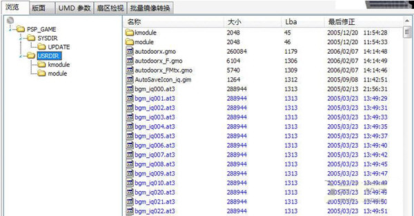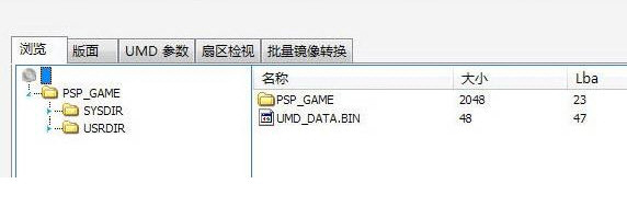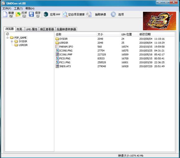 导入PSP的映像文件,在浏览的窗口里面显示文件信息