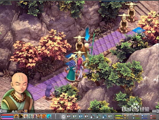 好友相聚:金陵(等级3),宝箱:X1(此关卡完成后新人物虚空,赤阳子加入)。出来男主不动当次木桩,小姑娘走到(如图2)位置,给和尚打,第2回合男主单挑赤阳子,小姑娘开宝箱,之后的回合就简单了,男主的站位要尽量让赤阳子往地图下方走来攻击自己,小姑娘则往上跑把和尚拉走,等男主消灭掉了赤阳子后再来收拾和尚吧,注意最后打和尚的时候,和尚的出招一定是1次破甲一次群攻,小姑娘抗不住,可以等和尚出破甲的时候上去打,出群攻则去一边休息。