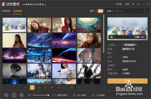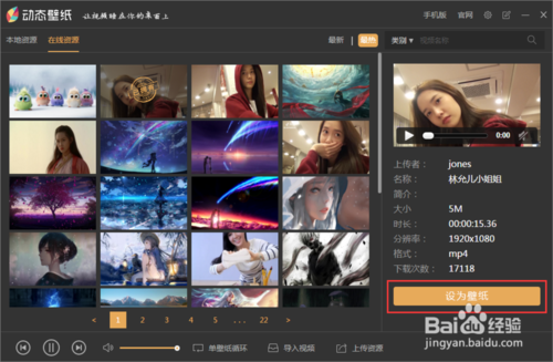 选择其中一款喜欢的壁纸,点击下载按钮,等壁纸下载完毕之后,点击设置壁纸按钮,桌面就会被设置为被选择的壁纸。