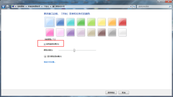 方法一:任务栏显示动态壁纸内容是因为win7的aero主题自带的任务栏透明度功能,即任务栏显示桌面内容,所以在动态壁纸播放的时候,任务栏也一起动起来了。那么解决方法就很简单了,那就是把任务栏自带的透明度调到最低即可。具体操作过程如下: