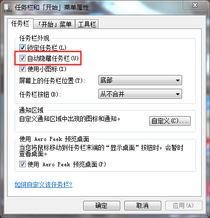方法二:眼不见为净大法!既然是嫌弃任务栏也有动画效果,那么我们把任务栏去掉行不行呢?OK的!