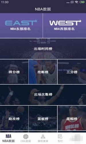 7、技术统计,包括得分榜,篮板榜,助攻榜,抢断榜,盖帽榜,失误榜,神投榜,三分榜和罚球榜;