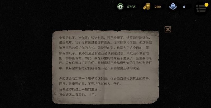 我们终于拿到了父亲给的信,可以在物品栏打开信件查看信件内容。