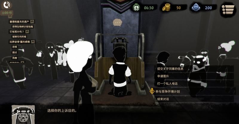 第一层晋升:全剧情通关有许多不同的方式,玩家需要通过各种设计,陷害,或是支走同事的方式来继续完成晋升。
