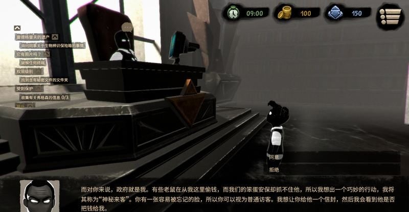 跟左边办公室的马克·罗格朗对话,向他询问关于生物辨识保险箱的事情,他会要求主角恶搞下我们的另一位同事彼得·董,我们可以选择同意恶搞他。