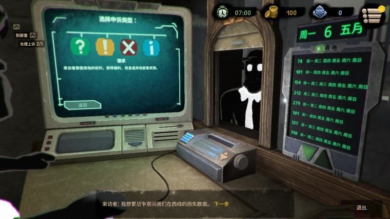 我们的工作流程是处理来访者的业务(前台),将他们的问题归类,制成表格,让他们自行前往找部门处理问题。由于玩家需要倾听+分析来访者的问题类型,所以笔者这里简单介绍下如何区分问题类型。