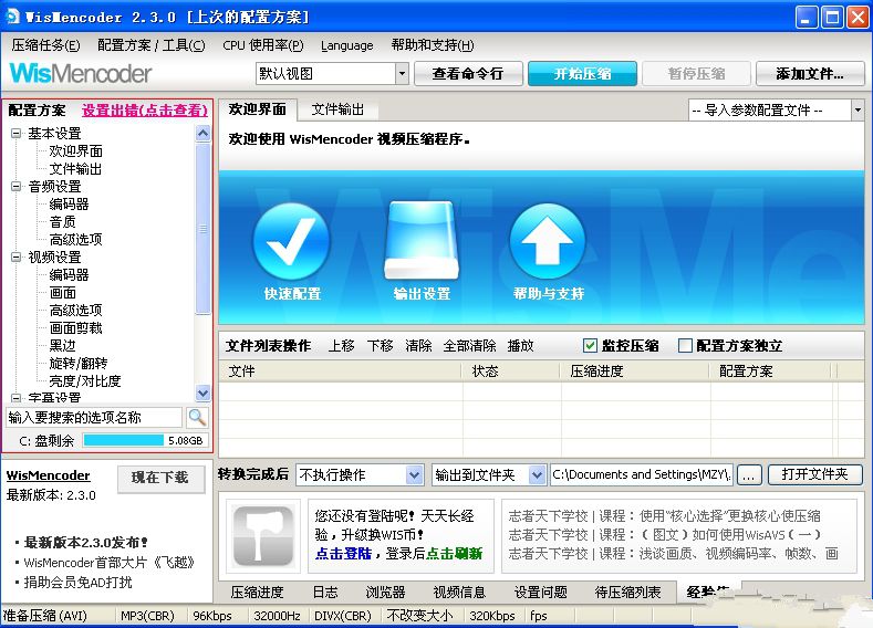 WisMencoder是一款基于Mencoder和Avisynth所推出的视频格式转换软件,用户通过这款软件可以将rmvb、mp4、dat、wmv等视频格式转换为高质量且所占内存少的AVI格式。该软件操作简单、界面简洁,每一位用户都能够轻松上手。