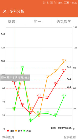 1、多维度分析学习成绩(单科成绩、多科成绩、排名成绩)2、多种图表分析成绩(折线图、柱状图)