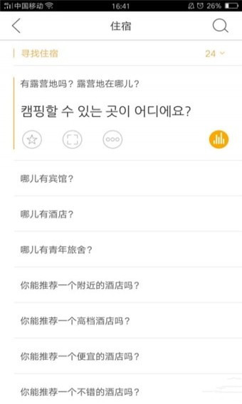 2、旅行相关场景分类,中韩文对照,点击即可发声;