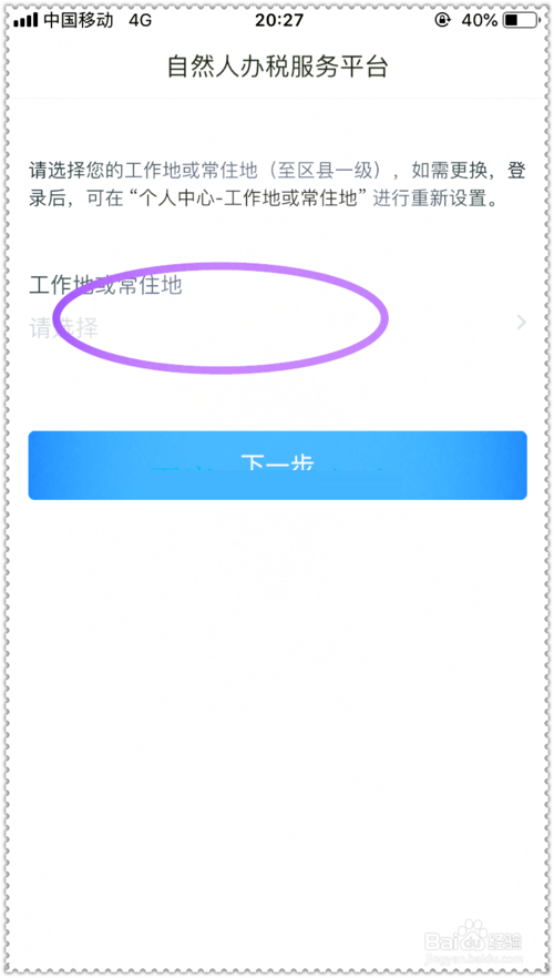 个人所得税App如何注册账户打开App,允许访问位置以及网络许可,第一次打开会让我们选择工作所在地或居住地,选择自己匹配的选项,点击下一步。