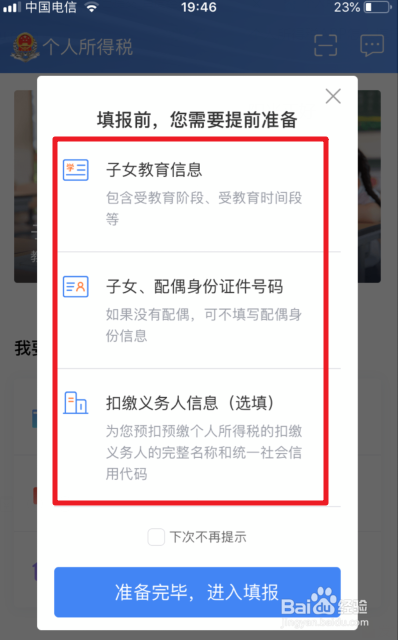 我们点击某一个分类,比如点击子女教育。点击后,页面会提示填报时,需要准备的资料,我们根据提示准备。