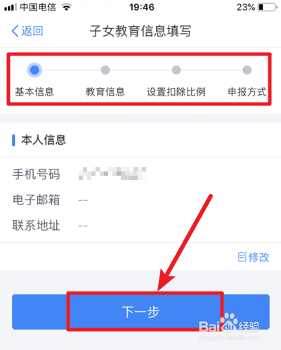 准备后,上方会显示填报该类目所需要的步骤进入,我们点击下方的下一步的选项。