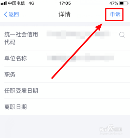 点击这个不对的信息进入后,可以看到右上角的申诉的选项,我们点击该选项。