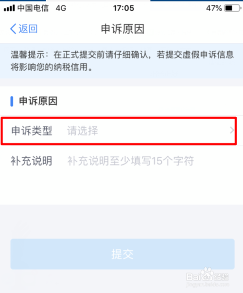 点击后,我们填写申诉类型,点击后可以看到两个选择。我们根据自己的情况选择。