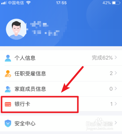 在个人中心界面,就可以看到银行卡的选项,我们点击进入该选项。