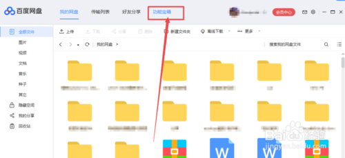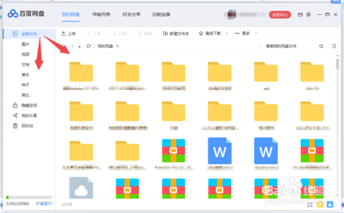 登陆成功之后,会来到 我的网盘 选项页面中。