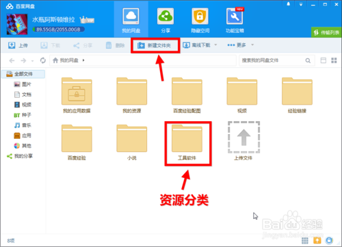 百度网盘自身是就文件类型进行分类展示,我们也可以创建专门的文件夹来进行资源分类。