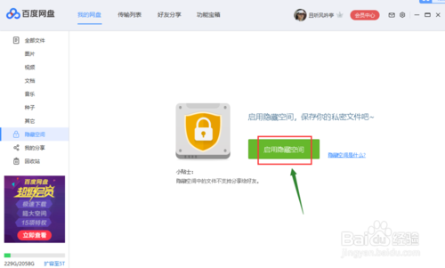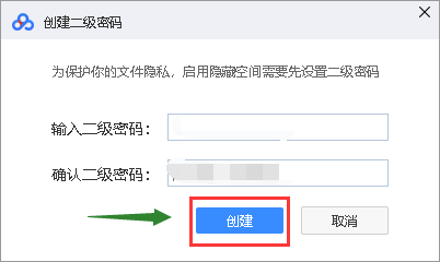 隐藏空间是在网盘的基础上专为用户打造的文件存储空间,贴心保护您的私密文件。首次启用隐藏空间,需要创建安全密码,通过网盘客户端访问隐藏空间需要输入密码方可进入。