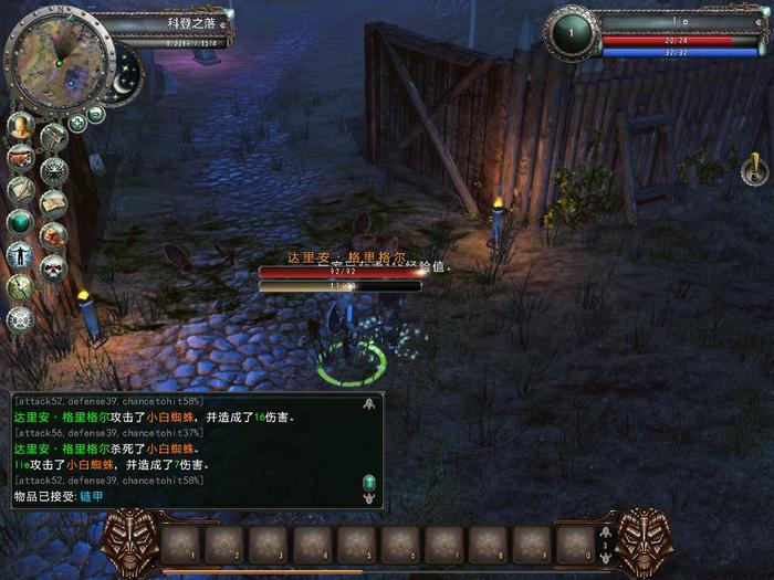 原先1准备升级(目测要打百只蜘蛛)加点后回城镇与各个NPC亲密交流去。没想到,一到天黑,怪物立马不和谐了,幸好可以穿地形跑回去。