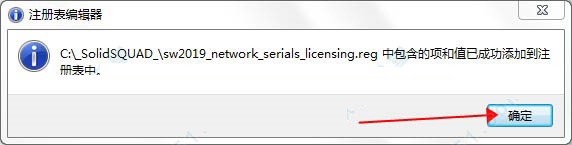 1、下载SolidWorks2019破解版安装包压缩包,解压SolidSQUAD_压缩包,将“_SolidSQUAD_”破解文件复制到C盘目录下,复制完毕后,双击运行“sw2019_network_serials_licensing.reg”导入注册表信息,弹出界面点击“是”即可