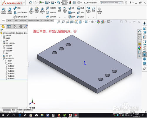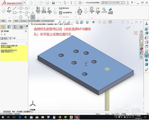 选择好孔的型号以后(此处选择M16螺纹孔)在平面上任意位置打孔