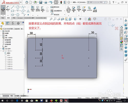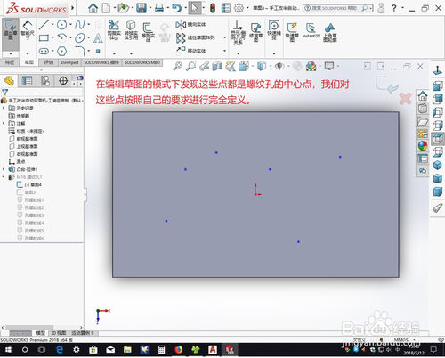 在编辑草图的模式下发现这些点都是螺纹孔的中心点,我们对这些点按照自己的要求进行完全定义。