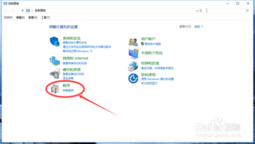首先找到控制面板然后打开,点击最下方的程序。