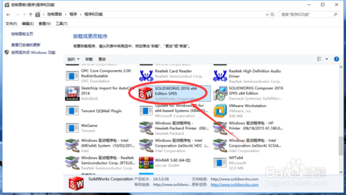 在程序和功能的页面下找到SolidWorks软件,用鼠标右击,选择“更改”。