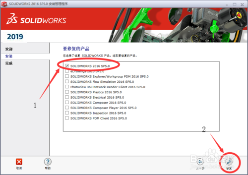选择自己想要修复的软件,可以修复所有SolidWorks的产品软件,这里我们只选择第一个SolidWorks2019,然后点击下一步。