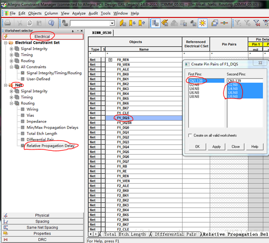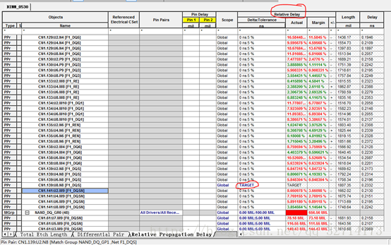 net schedule,点击这个,点击想要查看的网络,可以查看从s端到d端的飞线。顺序是先让T区两端的线保持一样长,总长误差5mil以内的,比如DQS和DQSN这两根线,两端线的误差就要在1mil以内。总长误差在100mil以内的,两端线的误差可以适当长一点。