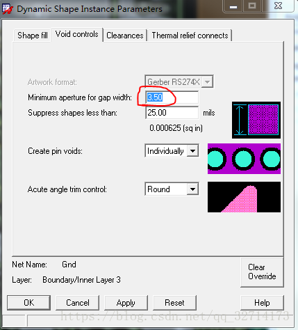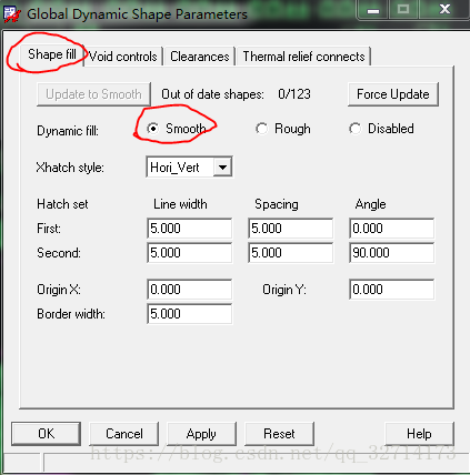 这样的铜皮比较参考性就不是很好了。可以设置以下参数,shape select--选中铜皮右键--parameters即可出现以下对话框。