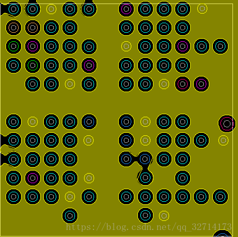 假如设置in-line的话,隔得近的孔之间的铜皮会没掉,比如下图这样: