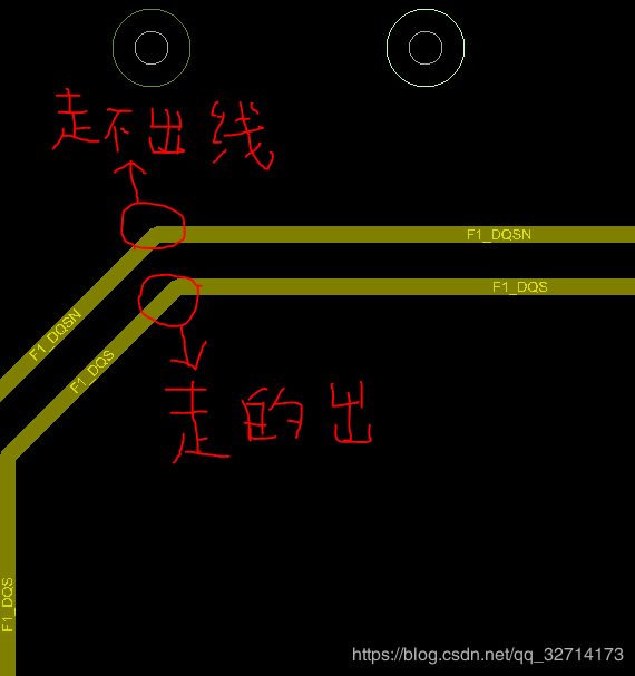 调整差分线的时候,即用连线命令在差分线拐角位置开始走线,外围的那根线会有走不出来的情况。这是因为拐角外围的那个点内围没有与他平行的点,但是内围的线在外围有对应的平行点,所以内围那根线可以走出线。