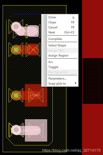 在shape edit boundary时也很有用,因为假如铜皮的端点不在格点上的话是选中不了的,这个时候就可以选择snap pick to--segment vertsxt,这样就可以很容易的选中铜皮的端点。