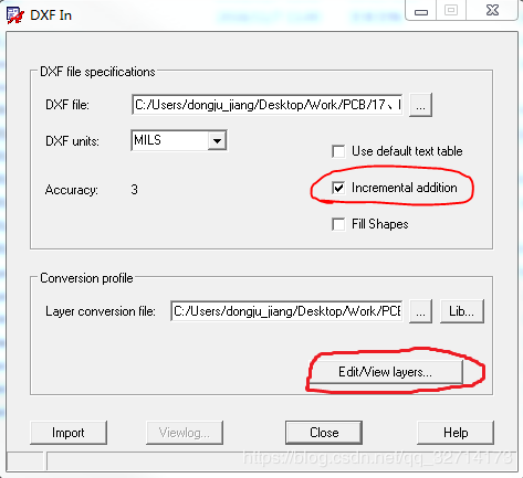 假如没有勾选incremental addition,dxf导进去之后之前的内容都会消失。然后点击edit/view layers