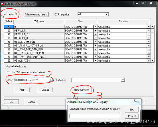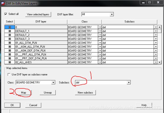 按照上述步骤,创建一个新的subclass,创建好之后map一下,点击ok,返回之前的对话框,就完成了dxf的导入。