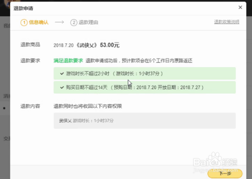 2、看了一下退款说明,游戏时间不能超过2小时,游戏发布之后不能超过14天