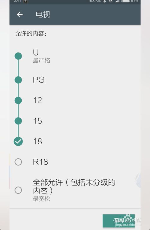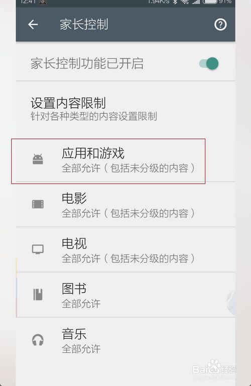 打开后选择要限制的类型,例如全部的则点击应用和游戏,在图二选择一个等级点击一下。