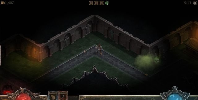 有3个职业,战士,盗贼,法师。城镇NPC有一个可以帮助免费回血回蓝的炼金术师,其提供的死亡充能是角色10级之后自动解锁的一个被动,玩家10级后死亡时会获得一个春哥一样的特效,原地满血复活并且反击怪物。每次升级会自动充能,只能累计一层。第二个NPC提供金钥匙的购买,后期专刷BOSS用。另外一个魔法坩埚,会自动将玩家收集的战利品合成,从铜奖到金奖,建议只开金奖,里面会有增加生命上限和一些符文跟卡牌。第三个NPC提供卡槽的扩充(前期金币无脑扩卡槽,加点全部加蓝量,卡槽能让你带最大限量的卡牌,蓝量相对于费用,不够对等的费用是无法装卡的),另外就是鉴别卡牌的服务,普通1000G一次,传奇5000G一次,右下角有个快捷键可以一次全部鉴别。第四个NPC提供符文的合成以及卡牌的升级。除了城镇外就只有一个地下城入口了,进入后会一层层往下,直到击败最底下的恶魔领主,会解锁自由模式,届时还能继续往下并且解锁困难以上难度,一共4个难度,另外金钥匙将在解锁后能够使用。