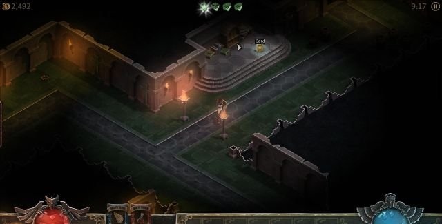 首先操作界面左下角是血量球,右下角是蓝量球,中间是卡槽,左下角有一个死亡充能被动,10级会亮,右下角有一个XP经验标志,地下城刷到双倍经验卷轴会高亮。界面很像暗黑类RPG,数字键用来操作卡牌的使用,鼠标用来移动和杀怪,游戏之中普通攻击靠鼠标左键实现,玩家的移动也可以用wasd,避免长时间点鼠标会手酸。不论是什么职业,卡牌种类主要分为三大类,一类是包括回城卷轴在内的以及各种药水(红蓝药,解除DEBUFF,太阳药水,无敌药水等),二类是装备类,卡面是绿色,会给玩家的攻击和防御带来各方面的加强,三类是法术类,既有位移控制法术,也有诸如充能的魔法箭等伤害法术。卡牌品质分为普通,稀有,传奇。传奇的品质最好,但升级费用也贵。