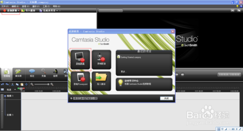 入门教程1.首先打开我们的Camtasia Studio,你将看到如下界面,点击录制屏幕。