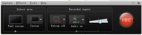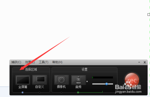 1.启动CamRecorder,在录屏小窗口界面先选择录屏区域,简单的可以选择全屏,当然也可以自定义区域大小。