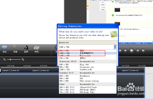 7.点击保存之后会跳出如下界面,我们选择“正在录制的尺寸”,免得大小设置不当导致视频变形。