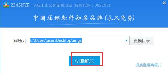 3、点击打开后我们就会看到如下图,同样的你可以在这里点击“更换目录”自定义设置文件保存路径,设置完成后点击“立即解压”;