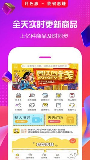 月色惠APP是一款购物还能赚钱的手机软件,月色惠app全天实时更新商品,上亿件商品及时同步。用户成为月色惠app合伙人可以躺赚,2亿优惠券嗨翻天,还能邀请好友获得现金奖励,轻松拿下100元。