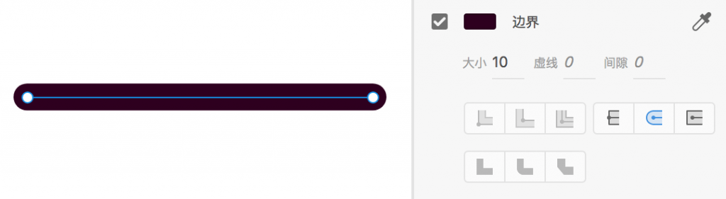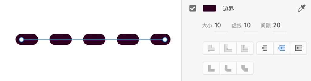 此外还有虚线设置选项,可以设置虚线的密度(在XD中叫做虚线)和间隙。
