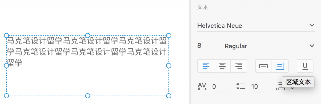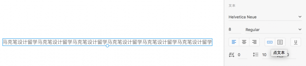 XD的文本工具可以说是简单好用,简单是说它的字符面板非常简单,相比Ai中的字符面板,只能设置字符间距,行距,段落间距;好用是指段落文本可以随时在点文本和区域文本之间随时切换。