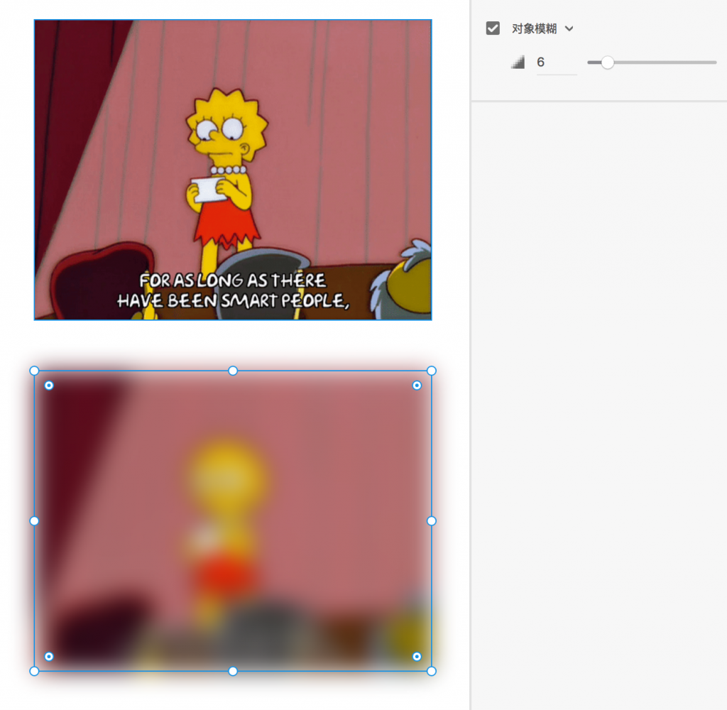 对象模糊是直接对图片进行模糊,类似于Ps中的高斯模糊。